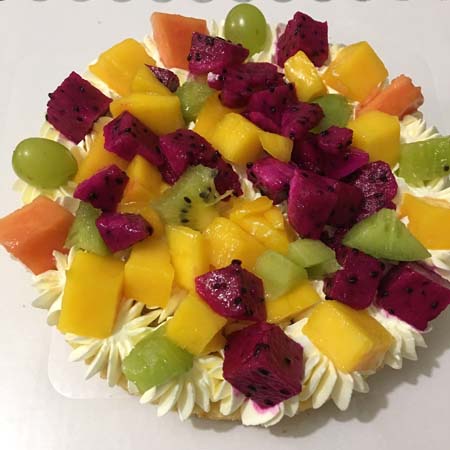 淡奶油、面粉、鸡蛋、白砂糖、芒果、红心火龙果、猕猴桃、葡萄等